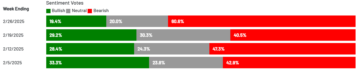I digress, back to AAII, their sentiment for whatever reason has deviated from their allocations in recent years. At the end of January this group of mostly retirees was 69% long stocks! The last time they were this bearish was September 2022 and before that? March 2009. Following that September 2022 bearish sentiment reading they were holding a 62% equity allocation and in March 2009 a mere 41%. These sentiment polls are meaningless unless the folks taking them are actually adjusting their allocations to reflect their beliefs. In my opinion, a 69% stock allocation is a no fear allocation for a retiree.